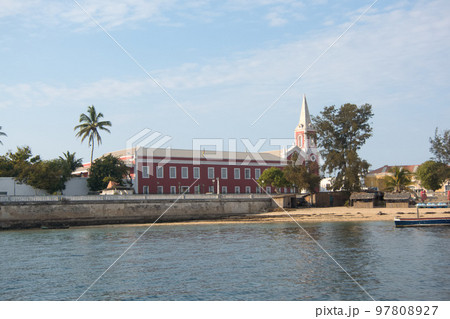 世界遺産モザンビーク島のサン・パオロ宮殿の海からの眺め