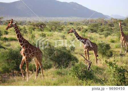 アミメキリンの群れ サンブル国立保護区