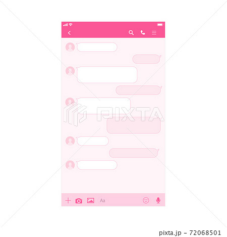 メッセージアプリのチャット履歴のスクリーンショットイラスト素材:文字スペースが空白の吹き出し・ピンク