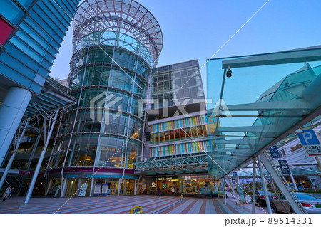 夕暮れのJR高松駅付近の商業施設(マリタイムプラザ)