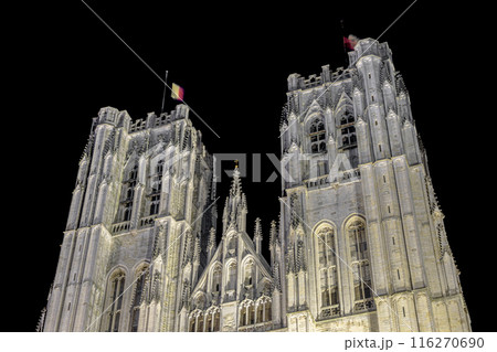 ベルギー ブリュッセル サンミッシェル大聖堂 ライトアップ