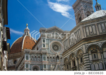 イタリア フィレンツェの中心部 ドゥオーモをバックに洗礼堂、鐘楼
