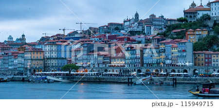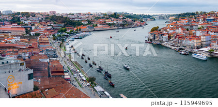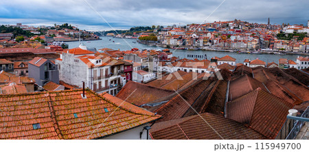 ポルトガル 湾岸都市ポルトのドウロ川のある風景