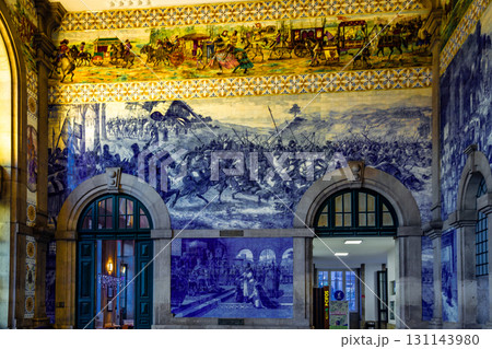 ポルトガル ポルト サン・ベント駅の壁のアズレージョ タイト