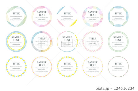 ベクターの水彩風 サークル フレーム レジメンタルストライプ セット