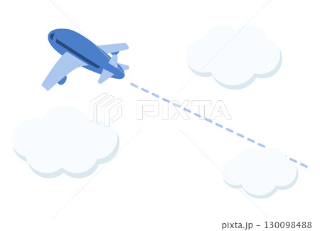 雲の浮かぶ空をジェットで飛ぶ上から見下ろした飛行機のイラスト