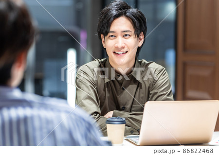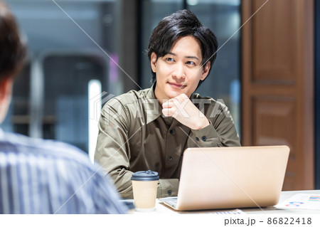 オフィスで打ち合わせをする若い男性 撮影協力:WEEK芝大門(サンフロンティア不動産)