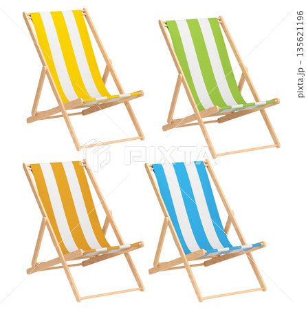 Set of striped beach umbrellas for summer getaways isolated on white background.
