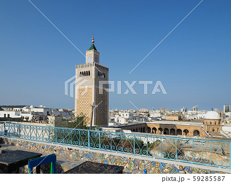 チュニジア・チュニスの旧市街の町並みとザイトゥーナモスク / Tunis, Tunisia