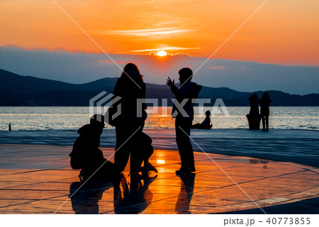 Beautiful sunset on the Adriatic Sea at the Zadar