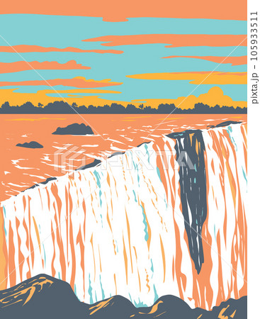 Victoria Falls or Mosi-oa-Tunya of the Zambezi River WPA Art Deco Poster
