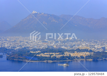 マチャラ・マグラ・ヒルから望むザオベロイウダイヴィラースと町並みとモンスーン・パレス