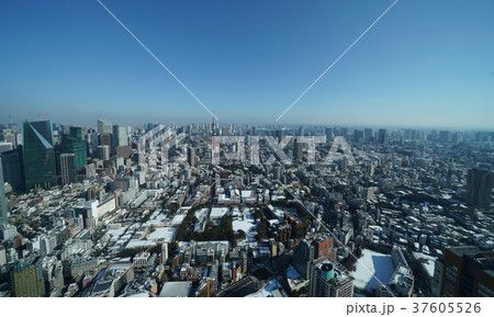 日本の東京都市景観・4年ぶりの大雪から一夜明け「港区やお台場などを望む」=2018年1月23日撮影