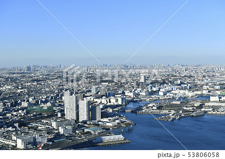 日本の東京都市景観 横浜から東京を一望する(新宿や池袋、渋谷、東京タワー、東京スカイツリーなど)