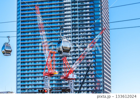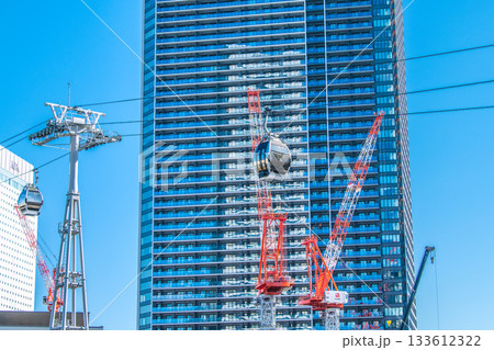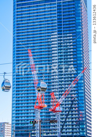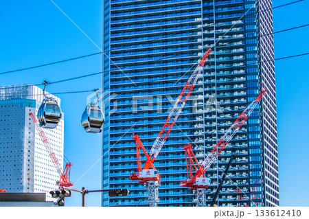 日本の横浜都市景観9月26日。桜木町駅前のロープウェイや「ザ・タワー横浜北仲」前のクレーンなどを望