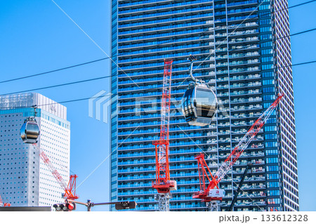 日本の横浜都市景観 YOKOHAMA AIR CABIN桜木町駅と運河パーク駅を結ぶロープウェイ