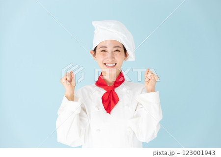 女性 シェフ コックコート ガッツポーズ