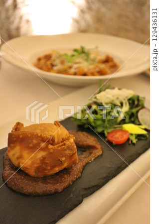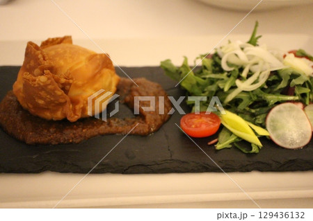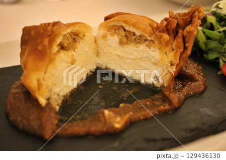 フランス料理 シェーブルチーズのパイ包み イチジクソース添え マルタ・ヴァレッタのレストランにて