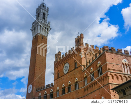 イタリア・トスカーナ地方シエナのカンポ広場とマンジャの塔