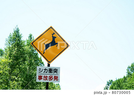 シカ 道路標識 交通標識 道路案内 警告 注意 野生動物 危険 動物注意