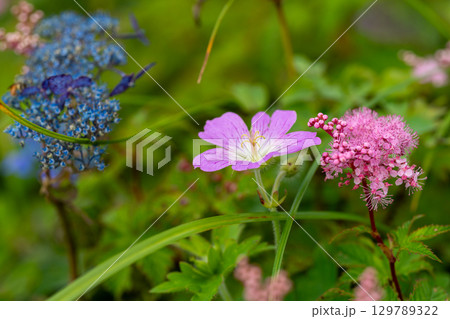 大山ユートピアコースの花々 イヨフウロとシモツケソウとヤマアジサイ2 鳥取県西伯郡大山町
