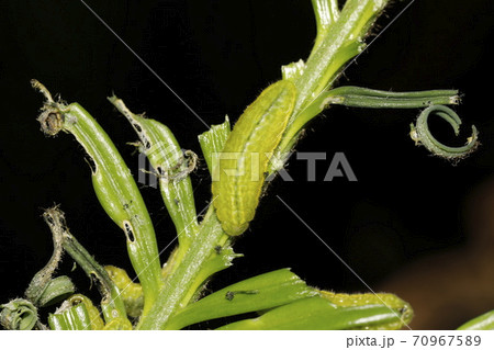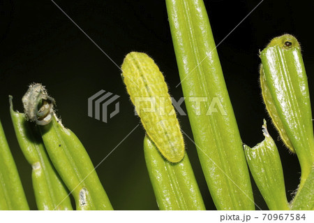 ソテツを食べるクロマダラソテツシジミの幼虫