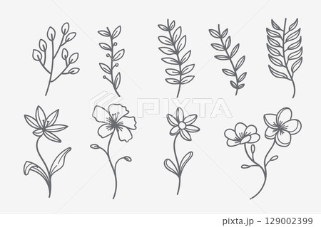 Vector set of doodle flower and leaf elements. Autumn and spring collection. Floral graphic design. Herbs, berries and wildflowers. Hand drawn vector botany set.