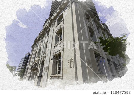 水彩画風 神戸 シップ神戸海岸ビル 兵庫県神戸市