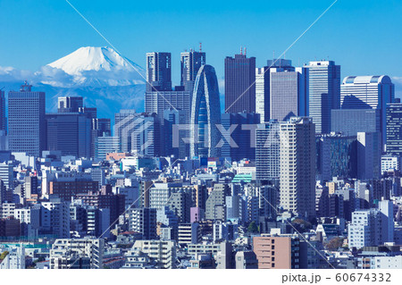 (東京都-都市風景)新宿高層ビル群と富士山5