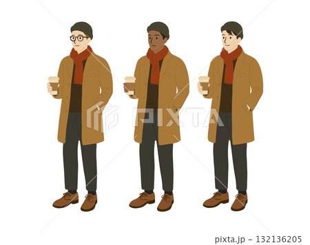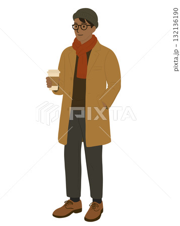 テイクアウトしたコーヒーを持った男性のイラスト