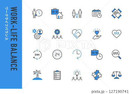 ワークライフバランス・働き方改革に関するアイコンイラストのセット