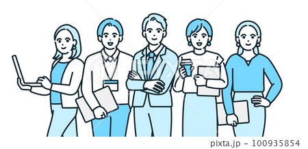 営業、エンジニア、デザイナー、バックオフィス。企業で働く様々な人材。ベクターイラスト素材。