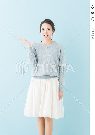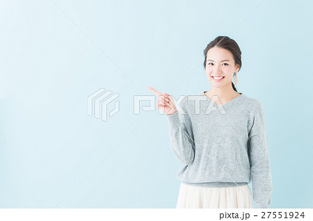 20代 女性モデル(青背景)