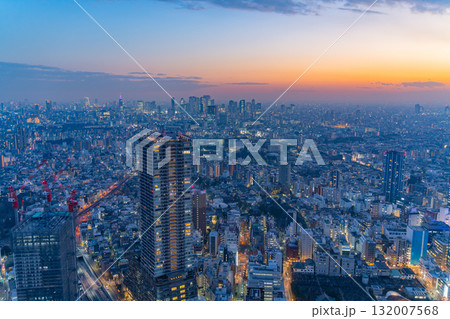 《東京都》SHIBUYA SKYから眺める東京都市風景・新宿方面 トワイライト