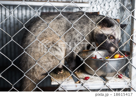 Asian palm civet or locals calls it Musang Pandan or Luwak coffee producer, latin name paradoxurus hermaphroditus, resting on a tree