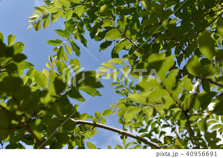 新緑 木漏れ日 青空 玉ボケ 美しい