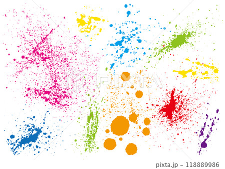 ポップカラーのインクの飛び散り、ペイントスプラッシュのイラスト素材セット