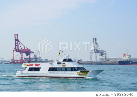 日本の横浜都市景観 みなとみらいぷかりさん橋を出航した「CIEL BLEU(シエルブルー)」=23日