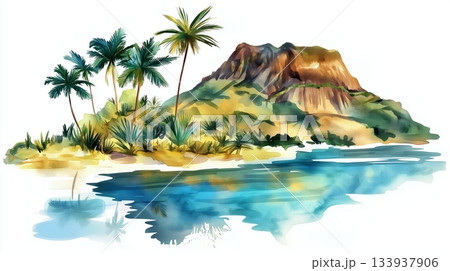 Chamarel Seven Colored Earth. Chamarel Seven Colored Earth hand drawn watercolor illustration on white background