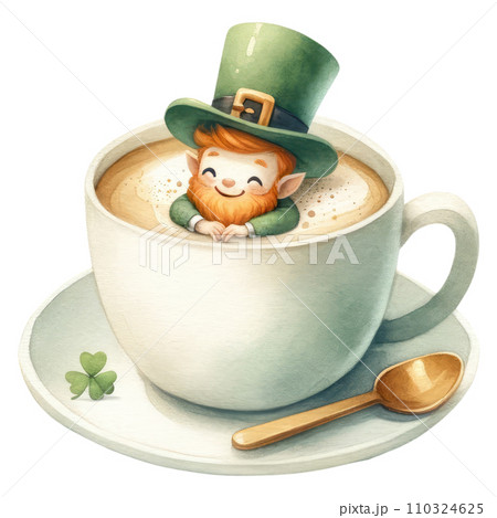 Leprechaun in green clothes in a coffee cup to celebrate St. Patrick's Day