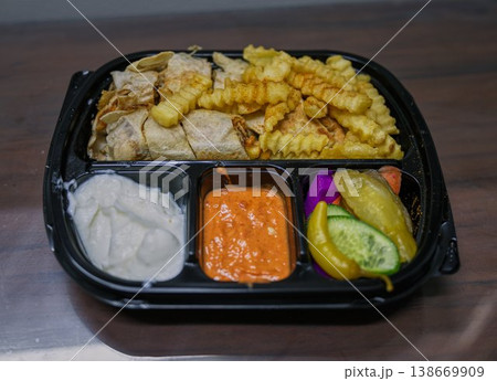 エジプトのシャワルマセット(フライドポテトとピクルス付き)