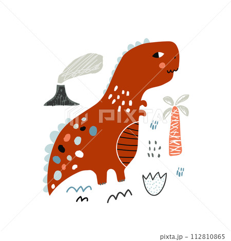 Cute hand drawn dinosaur. Cartoon baby t rex illustration in scandinavian style. Creative vector dino print