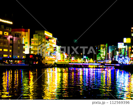 福岡市中洲の清流公園から撮影した福博であい橋上の「ナカス ヒカリノ アドベント」のイルミネーション