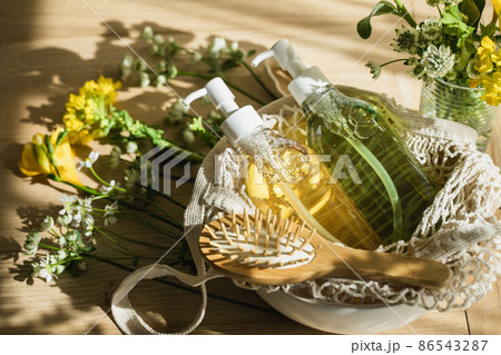 シャンプーとコンディショナー ナチュラルなヘアケアのイメージ素材