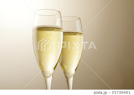 よく冷えたシャンパン(スパークリングワイン)が注がれたフルートグラス