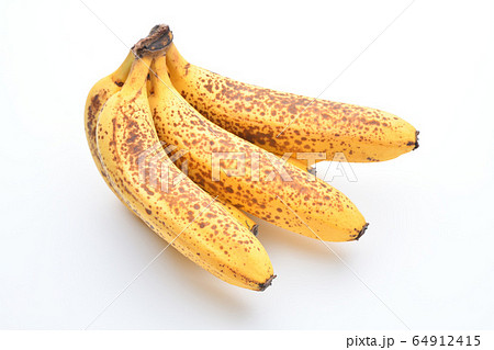 シュガースポットのあるバナナ 白バック 白背景
