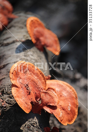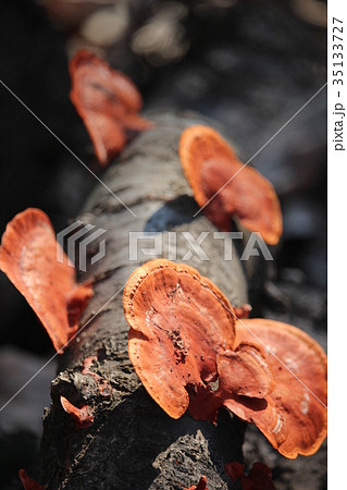 きのこワールド ヒイロタケ鮮やかな朱色のキノコ