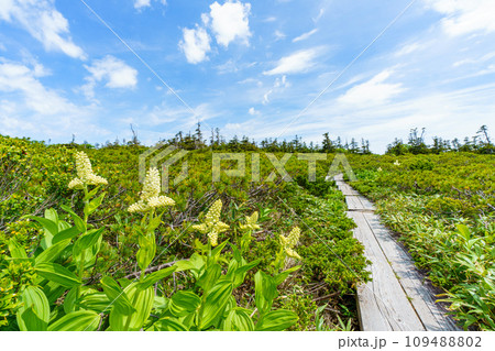 山形県 夏の月山 牛首ゲレンデに咲くコバイケイソウ