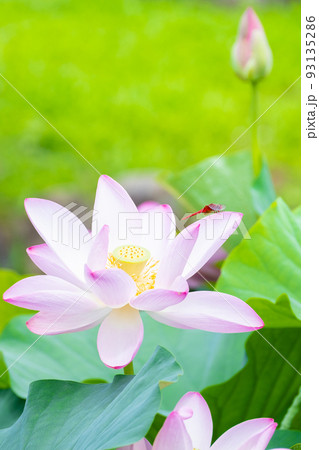 大賀蓮のつぼみに止まるショウジョウトンボ