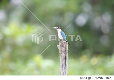 ベンチの上に留まるナンヨウショウビン